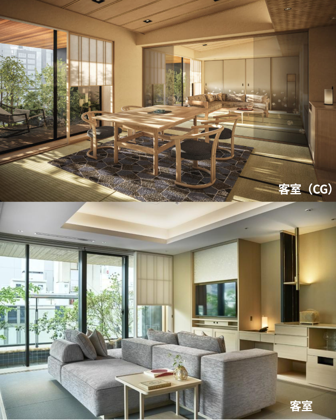 客房內融合四季草花與日式美意識,部分房型更可於客室內享用旬味料理,享受私密款待。