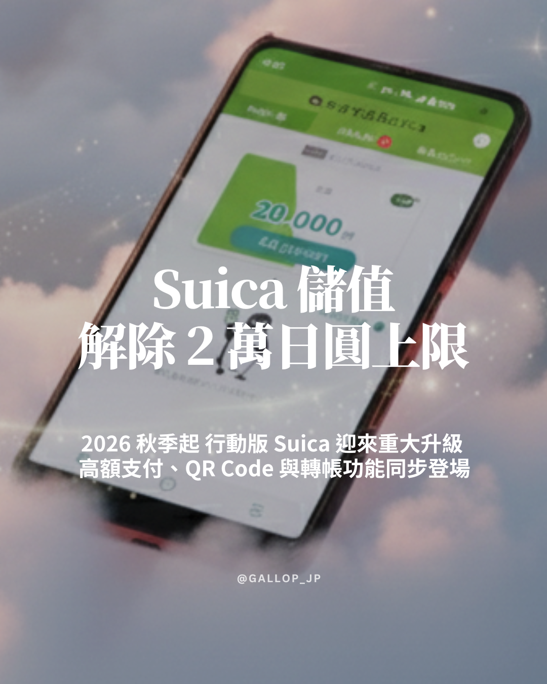 ​繼今年年初公布的「Suica 十年升級計畫」後,JR 東日本再宣布新消息,2026 年秋季起,Suica 行動版(Mobile Suica)將迎來大幅升級,未來大金額的消費也可採 Suica 支付!