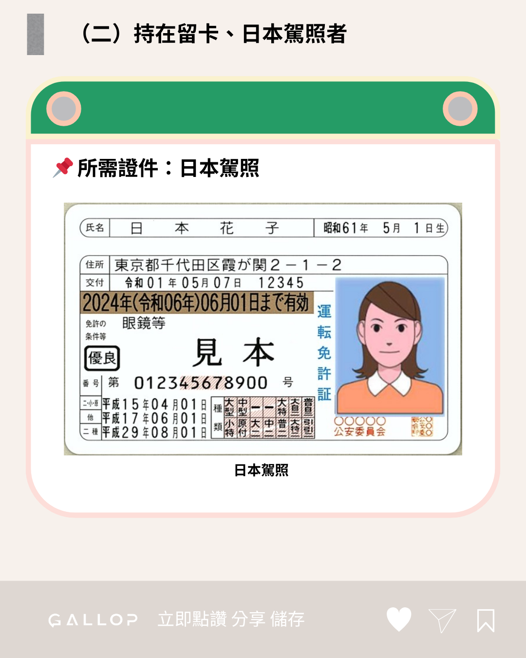 (二)持在留卡、日本駕照者