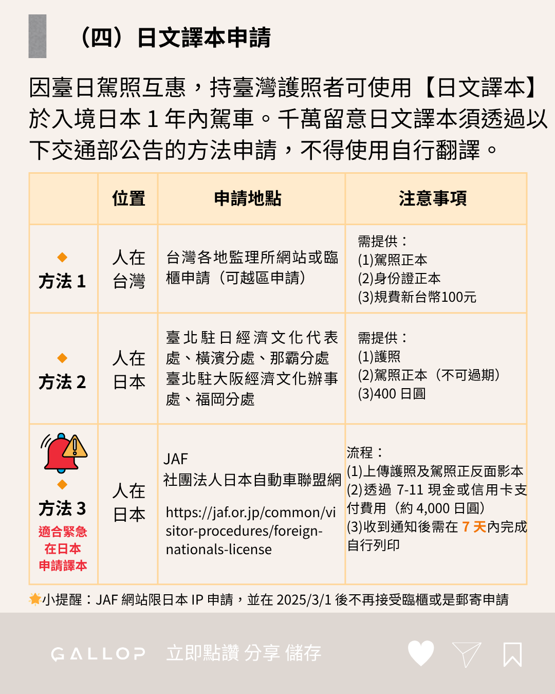 小提醒:JAF 自 2025/3/1 起,不再接受臨櫃或郵寄申請,請改用線上方式。