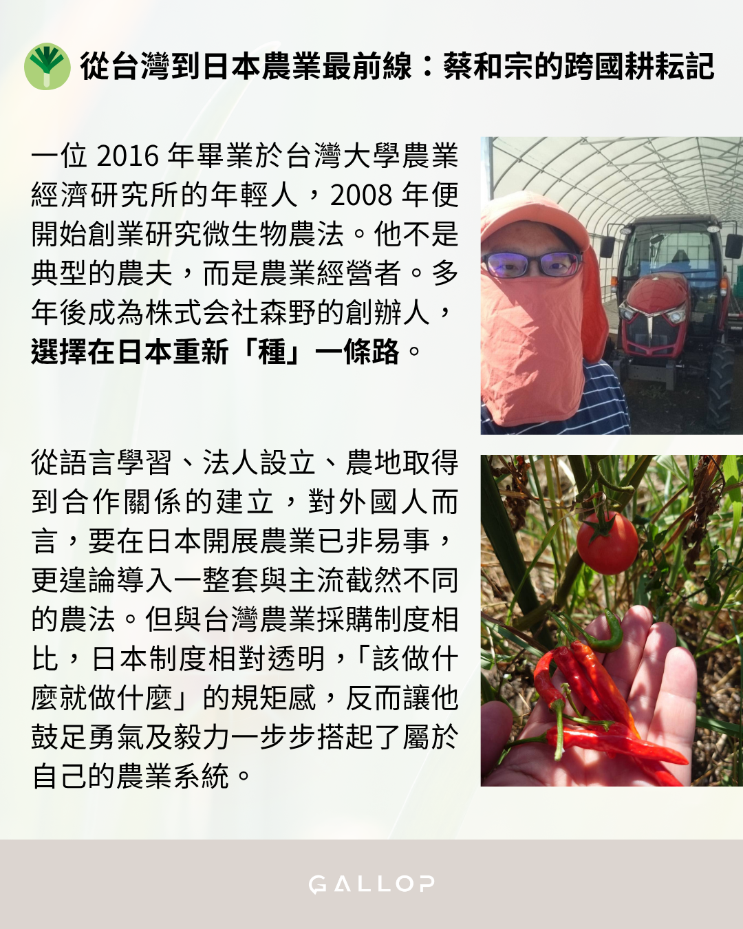 #Gallop人物訪談 #日本農業 #在日台灣人 #土壤醫檢定3級 #農業コンサルタント